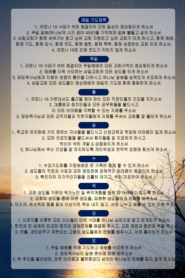 • 기도제목 코로나19사태로 인한 매일 기도제목