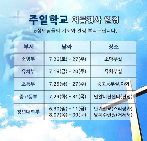 • 교회소식 주일학교 여름행사 일정